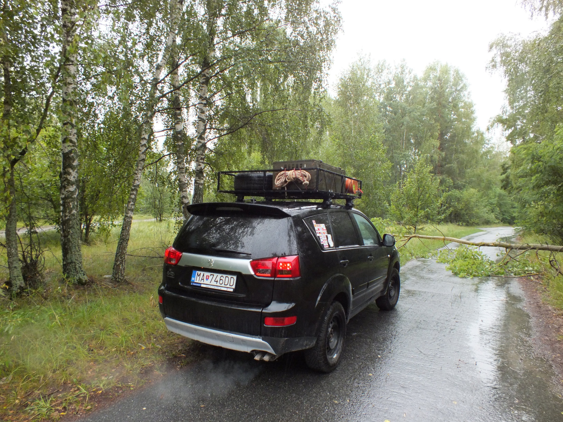 Ráno ideme normálne do roboty odpracovať si poctivo pár povinných hodín. Okolo 12 hodiny opúšťame s čistým svedomím prácu, doma zbalíme posledných pár potrebných a možno aj nepotrebných vecí a o 13:30 h vyrážame za novými dobrodružstvami a zážitkami. Voľba auta padla na Peugeot 4007 obutého do AT pneumatík - dobrá voľba na ukrajinské cesty.
