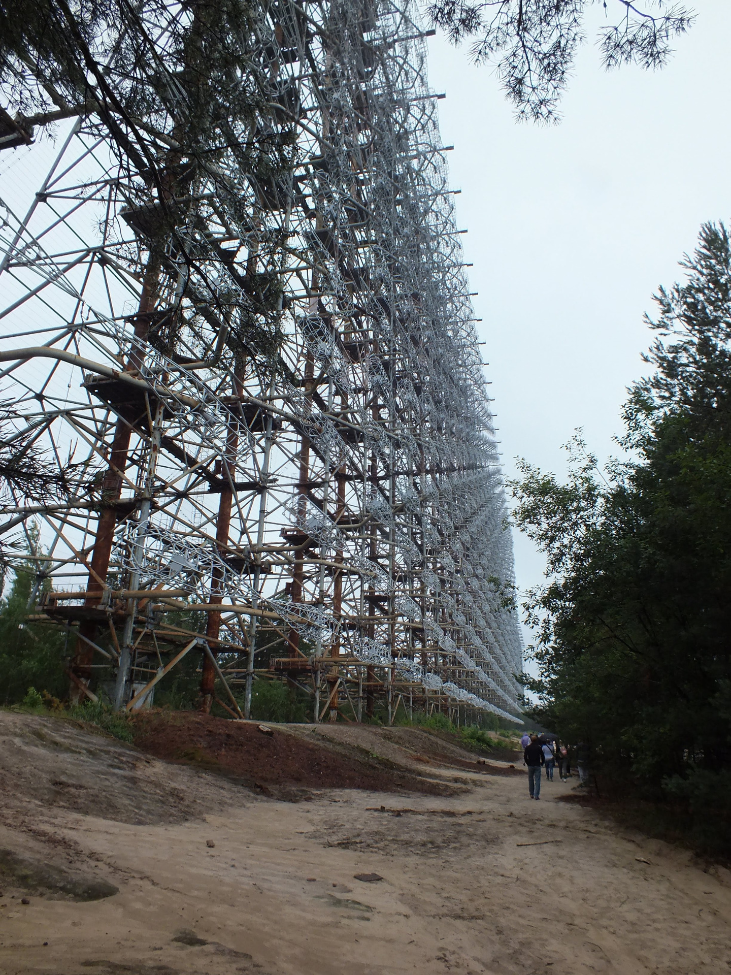 Potom sa presúvame k radaru "Duga" (rusky: Дуга) - bol to sovietsky radarový systém dlhý 0,5 km a na výšku 155 m, využívaný ako súčasť systému včasnej protiraketovej výstrahy. Stavebné práce na radare Duga-3 boli zahájené v prísnom utajení v prvej polovici sedemdesiatych rokoch. Černobyľ mal dodávať energiu potrebnú k masívnemu výkonu, ktorý sa po zapojení blížil 10 MW. V túto dobu už celý ukrajinský projekt zhltol 14 tisíc ton oceli a prišiel na 7 miliárd rubľov.
