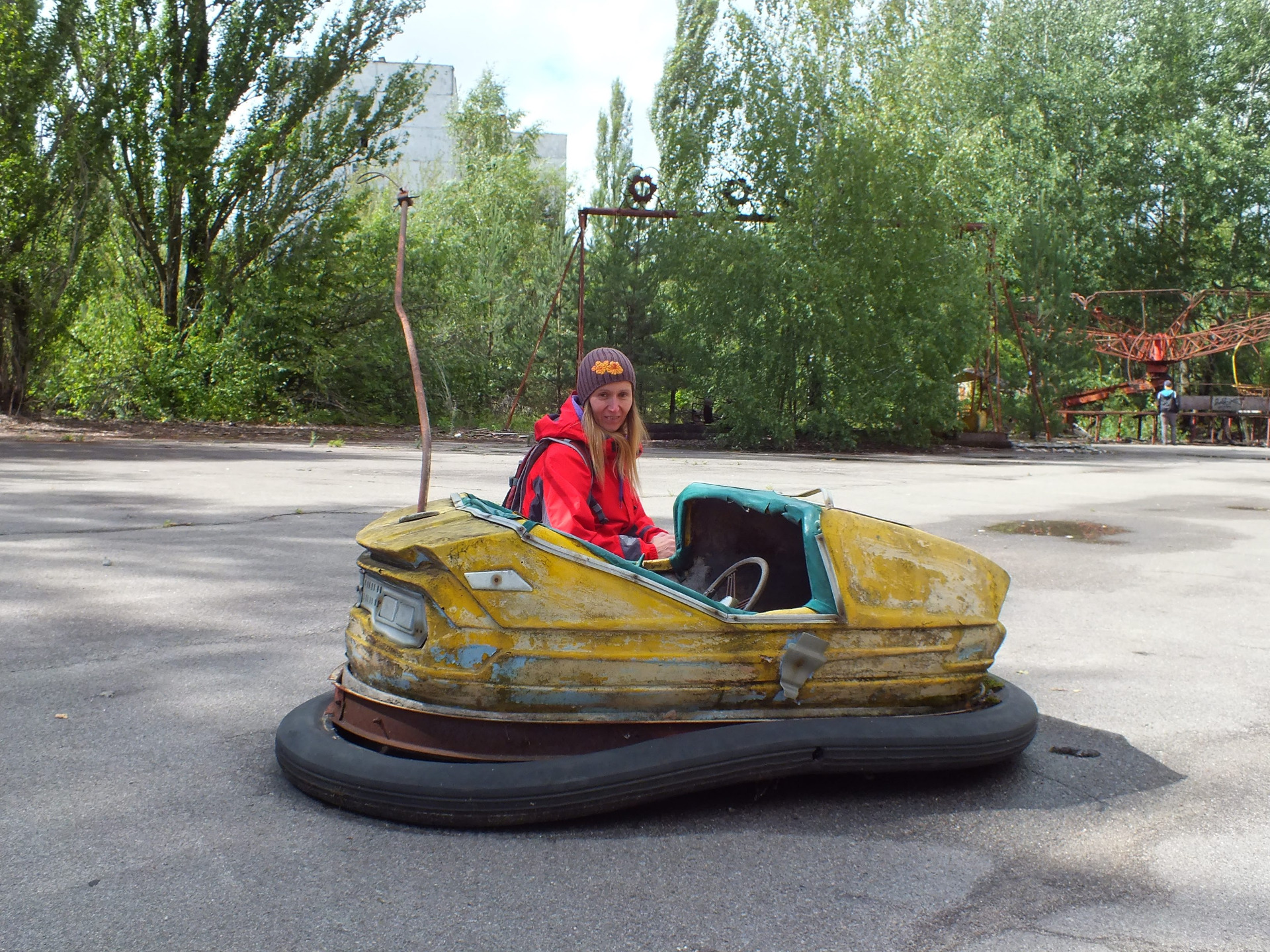 Budíme sa okolo 6:00 na budík, vonku je zima a prší. Pred "zónou" sme už okolo 8 h a máme čas, lebo sprievodkyňa podľa pokynu agentúry má prísť až okolo 10 h. Ja si zase preleziem dozadu auta, kde si pospím a Johny drieme na prednom sedadle. Okolo 10 h sa začínajú pred vstupom do zóny objavovať prvé Mercedesy Sprintery s turistami. Zoznamujeme sa s našou sprievodkyňou a po kontrole na vstupe do zóny nastupujeme do "nášho" Mercedesu a okolo 10:50 vyrážame na prehliadku Černobyľu a mesta Pripjať.